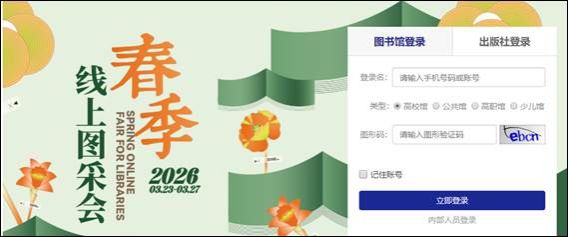 为使您借阅到心仪的图书,图书馆邀请您参与3月23日-27日线上图书采购会,数百家出版单位全品种图书、数十万种新书资源应有尽有,一键登录为你营造身临其境的体验感。更有多场出版社直播活动等待大家参与。欢迎各位读者莅临云端,共赴书香之约。借此活动让读者自主参与图书馆资源建设并丰富图书馆馆藏,图书馆将酌情订购你们所荐购的图书。具体操作请查阅线上采购指南。
